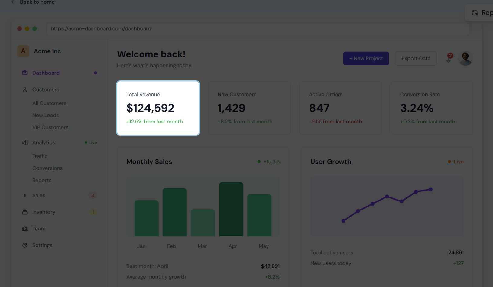 Best for: Pointing out a specific button, field, or section of your UI. Walking users through a flow step-by-step.